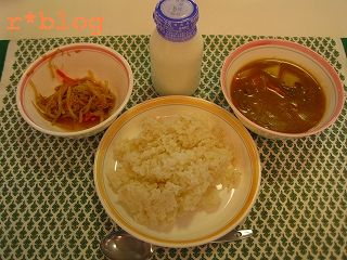 メニューはカレー・麦ごはん・もやしとツナのおかず・牛乳でした。