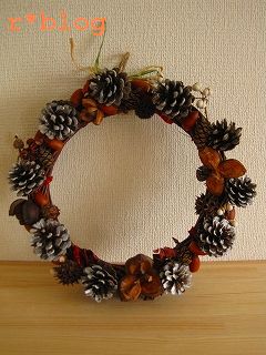 このリース作り、いろんな木の実とかドライフラワーを使って作るんやけど、めっちゃ楽しかった~