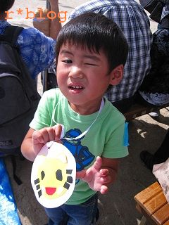 手作りのメダルをかけてもらってよかったね