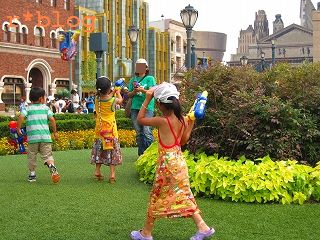 パークに入る前から水鉄砲で遊んでビチャビチャ
