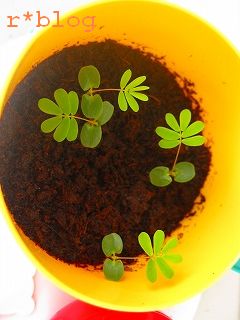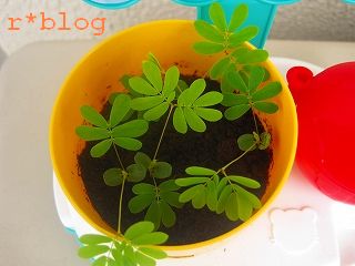 マサキのしまじろうのエデュトイでおじぎそうを種から育てる。