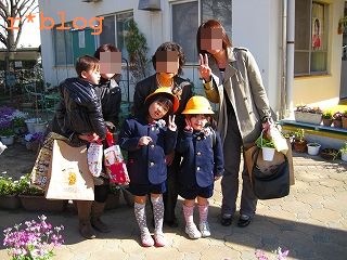 今年度で園長先生は退職されるということで、式の後、もう一度みんなで集まり年長さんもこれる人は参加して園長先生に花束を渡しました。