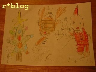 こちらは、マサキが描いた「サンタ・ツリー・トナカイ・ゆきだるま」です。