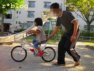 日曜日は私が風邪だったので家の前の公園でマサキの自転車のコマなし練習をパパにしてもらいました。