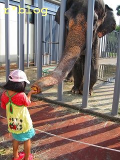 それから、ちょっと乗り物に乗ってからゾウのコーナーで今度はゾウのおやつの時間に遭遇し、参加しました。