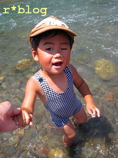 ライトは去年、るり渓に川遊びに行ったときはちょっと足をつけただけで泣き叫んでたけど、今年は初め恐がったけど意外と大丈夫で、マサキよりもずっと川の中にいました。