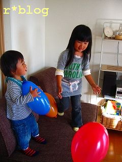 前に遊びに来てくれた時に風船を買ってきてくれたけど、今回も買ってきてくれてマサキもライトも大喜びで遊んでました。