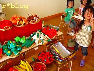やおやさんのコーナー。お野菜も全部手作り。色鮮やかでよくできてる