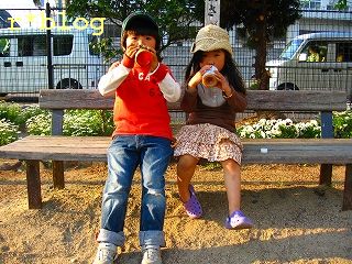 コンビニでお昼ご飯を買って、すぐ公園に着くと早速遊んでました。