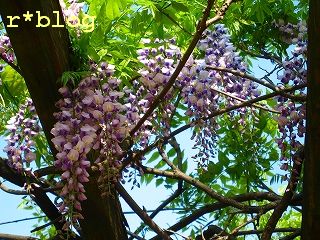 ベンチに座って上を眺めると、籐の花が。